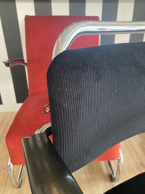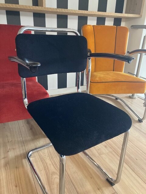 De bekleding is opnieuw gestoffeerd in zwarte ribstof.
