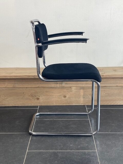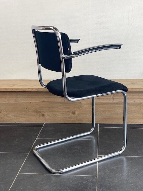 6 Gispen 201 stoelen, chroom, nieuwe zwarte ribstof