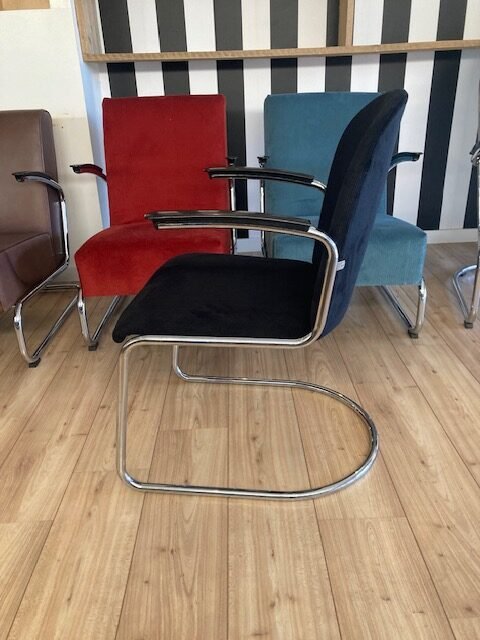 8 Gispen 413 RL stoelen , chroom, nieuwe zwarte ribstof