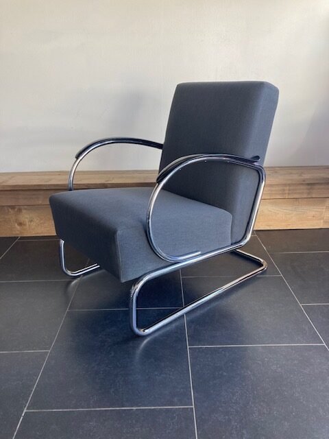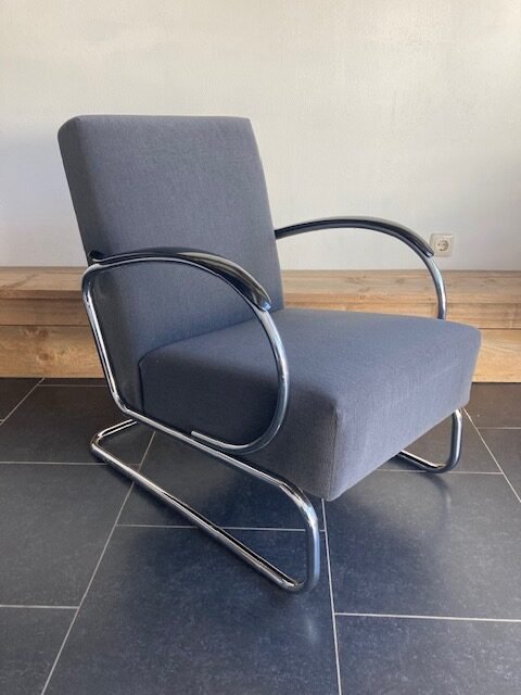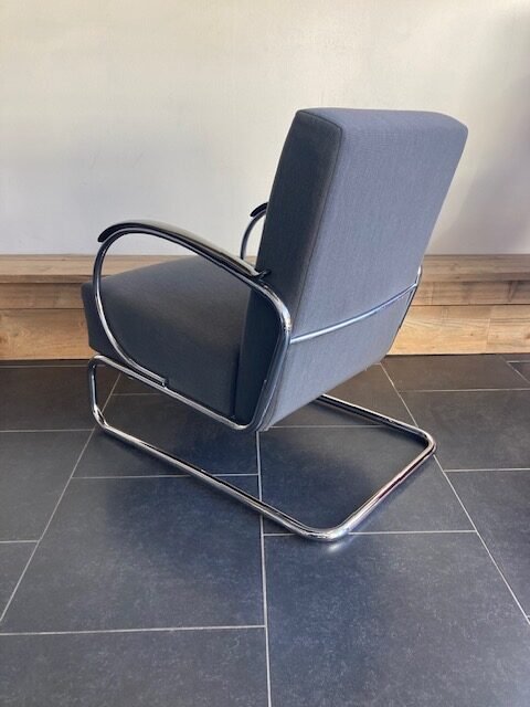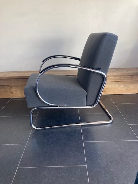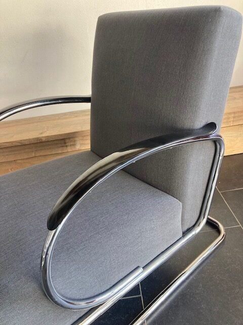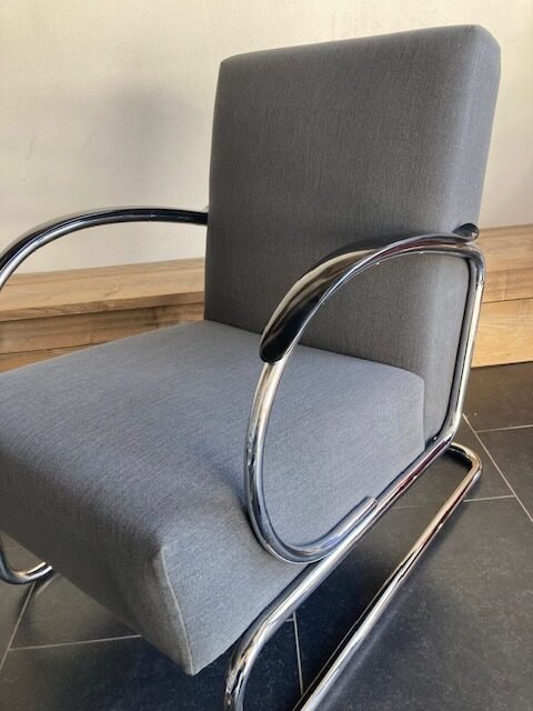 Gispen 407 fauteuil, chroom frame, grijze stof