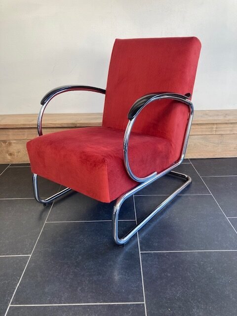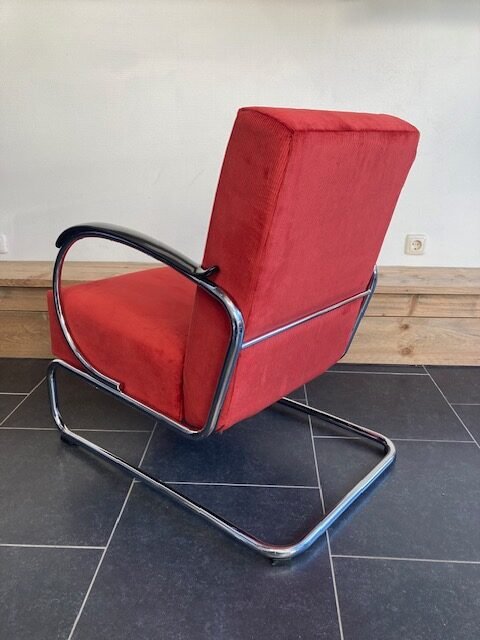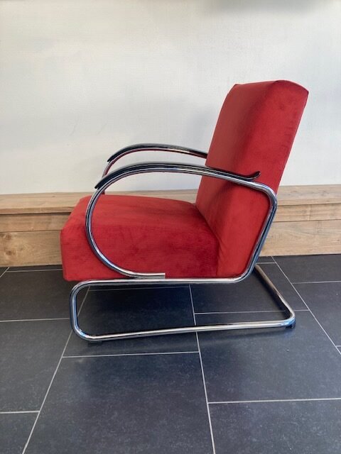 Gispen 407 fauteuil, chroom, nieuwe terra ribstof