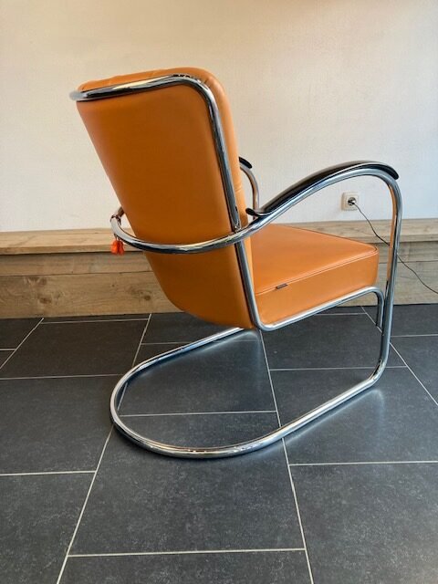 Gispen 412 GE fauteuil, chroom, leder caramel