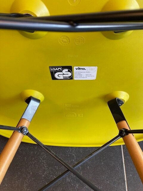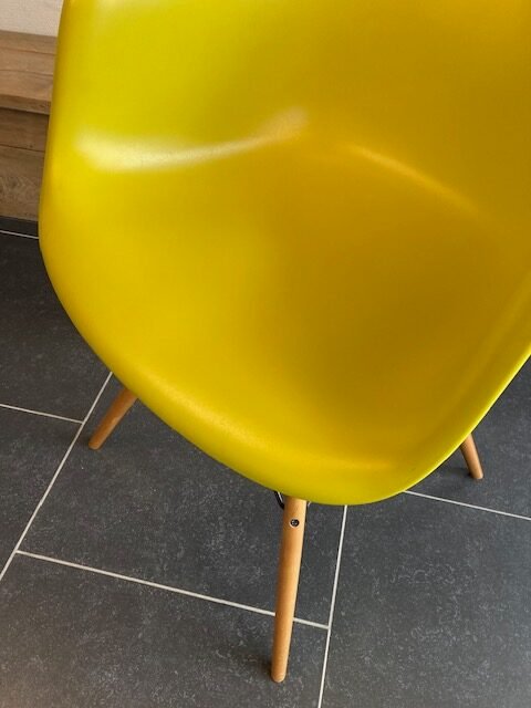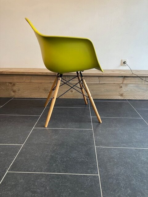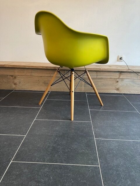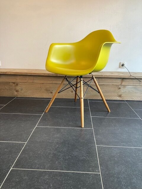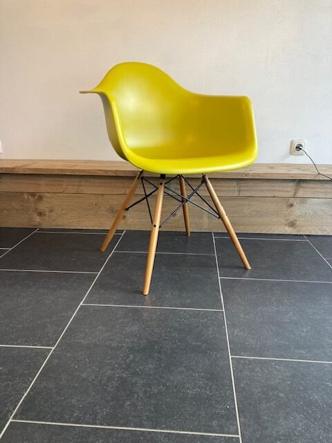 Vier Vitra Eames DAW , esdoorn goud, mosterd