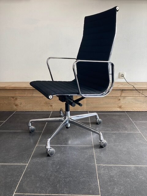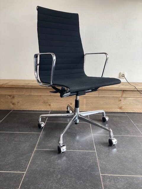 Vitra Eames EA 119 bureaustoel, chroom, zwart hopsak